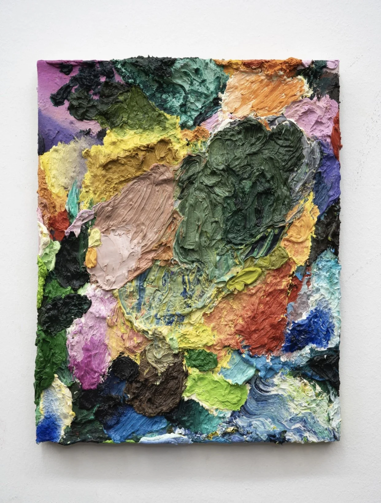 David Roth (Austria, 1985) has brought to the fair his signature use of color in Untitled (2010-2022), a whirlpool of superimposed oil paint of different shades, creating a large combination of pigments, which are almost escaping the canvas. The thick layers of color give this piece a strong appearance despite its dimensions.