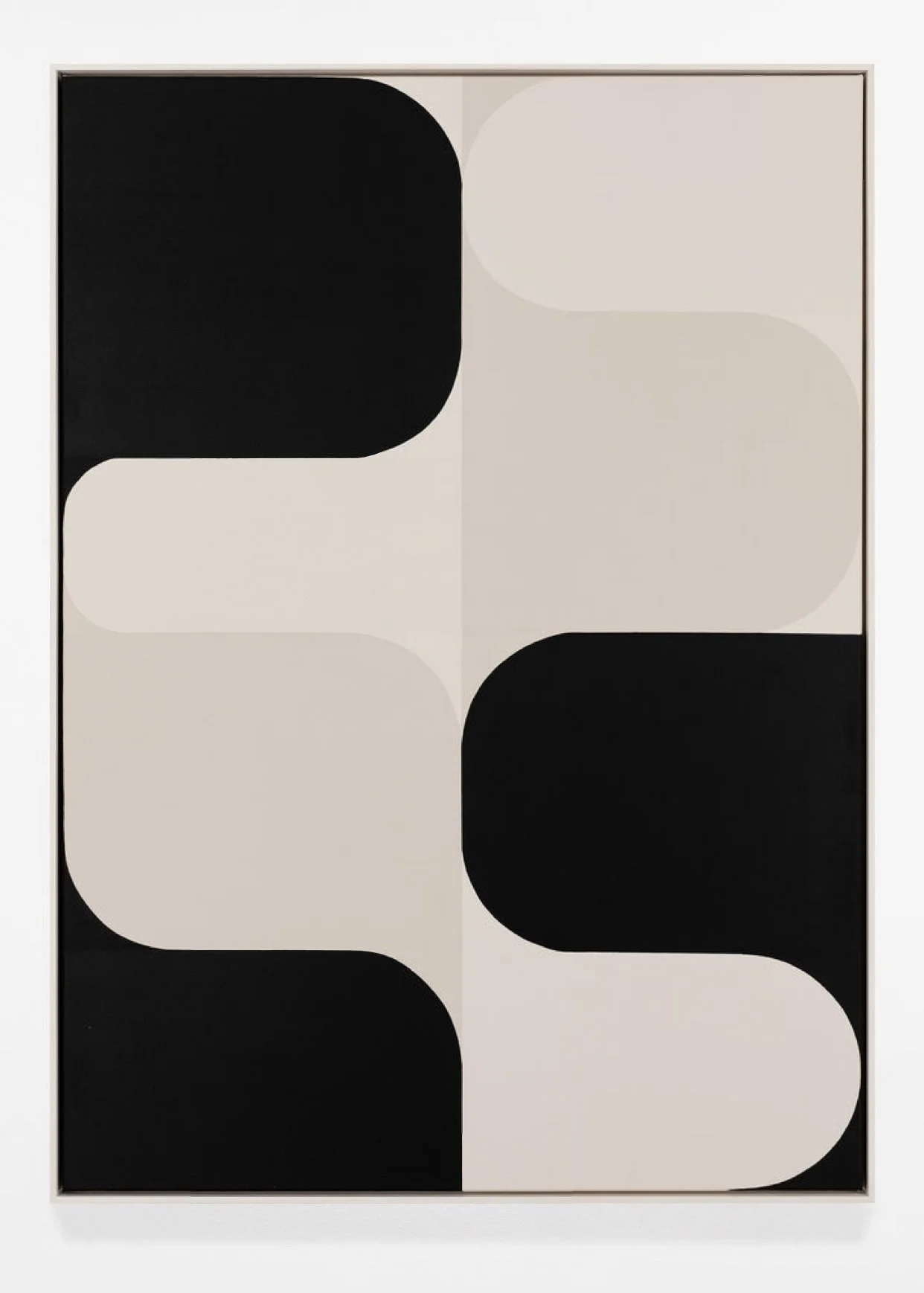 Elisa Alberti (Italy, 1992) speaks a language where abstraction rules the conversation. She plays with straight and curved lines, as well as with color gradations. In Ohne Titel / Untitled (2022), the minimal style and the black with beige hues give the work an aura of elegance.