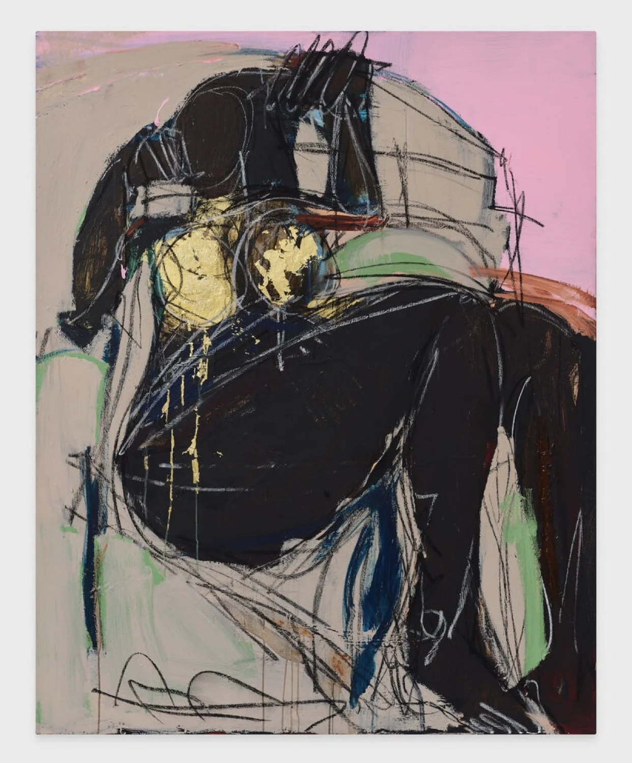 Ferrari Sheppard. Blush (2022). Acrylic, charcoal and 24k gold on canvas. 121.9 x 152.4 cm. MASSIMODECARLO.