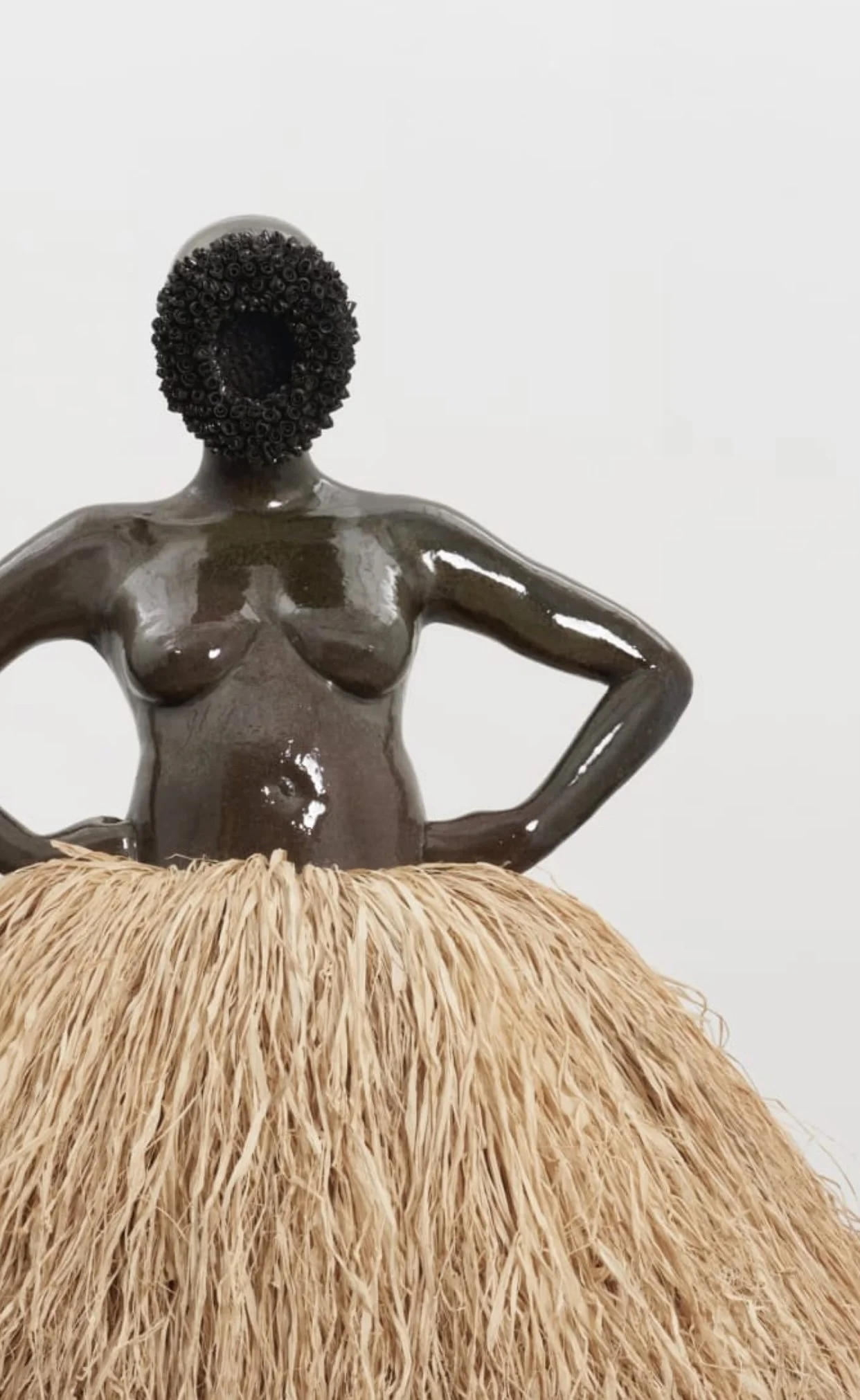 Simone Leigh. Akimbo, 2022. Detalle. Gres esmaltado, acero, rafia. 185.0 x 163.0 x 163.0 (cm). Matthew Marks Gallery.