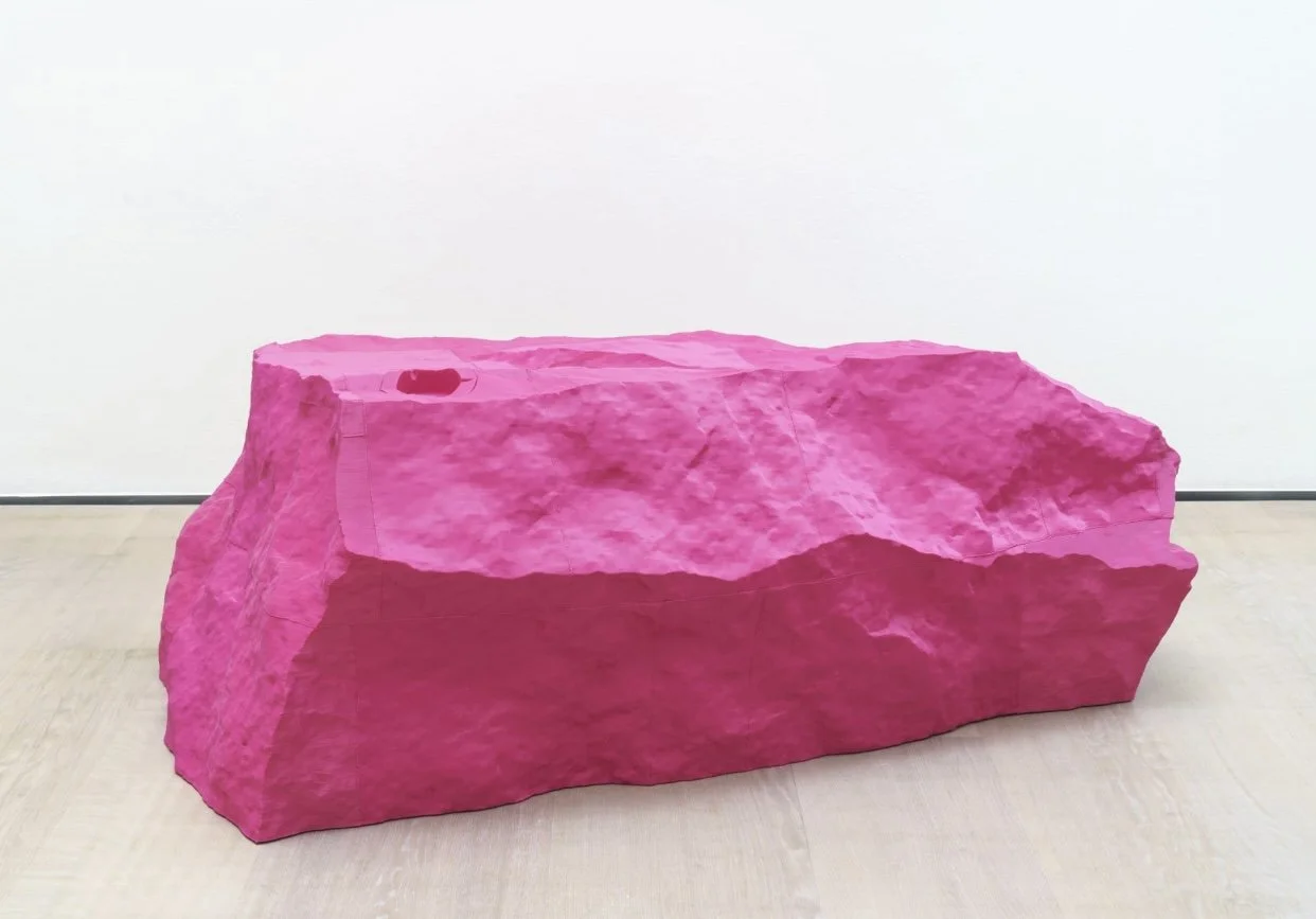 Tobias Rehberger. Fels magenta, 2022. PLM, GFK, laca. 53.0 x 148.0 x 96.0 (cm). Galerie Bärbel Grässlin.