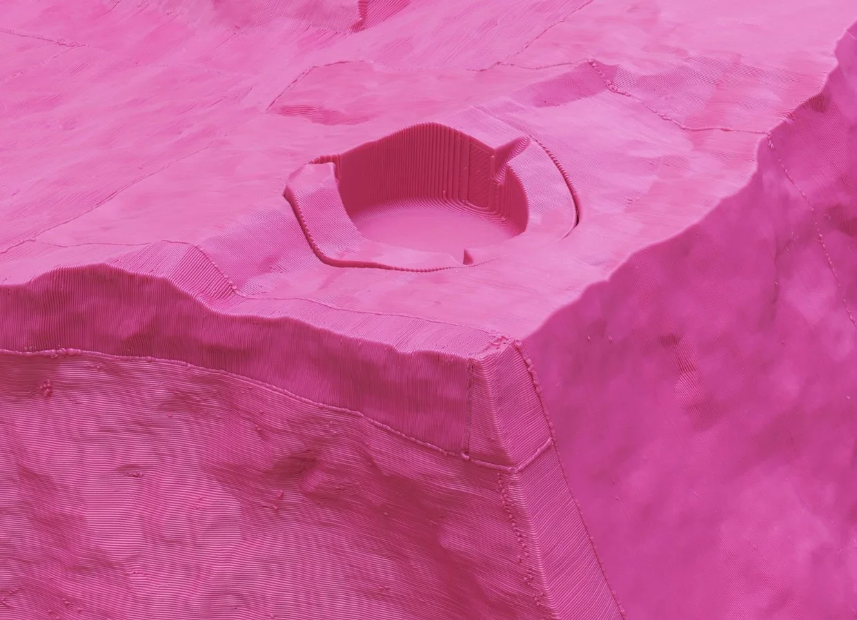 Tobias Rehberger. Fels magenta, 2022. Detalle. PLM, GFK, laca. 53.0 x 148.0 x 96.0 (cm). Galerie Bärbel Grässlin.