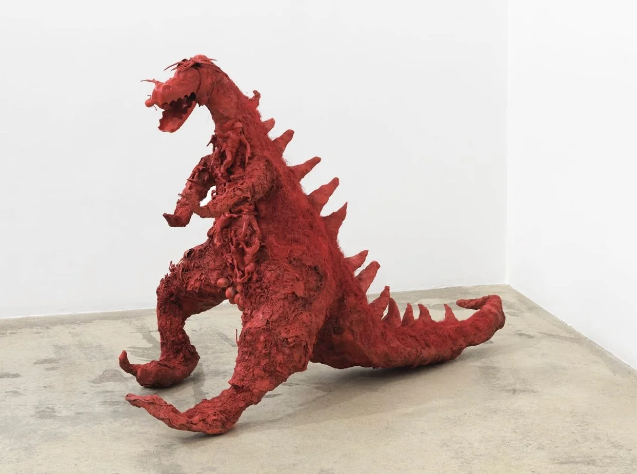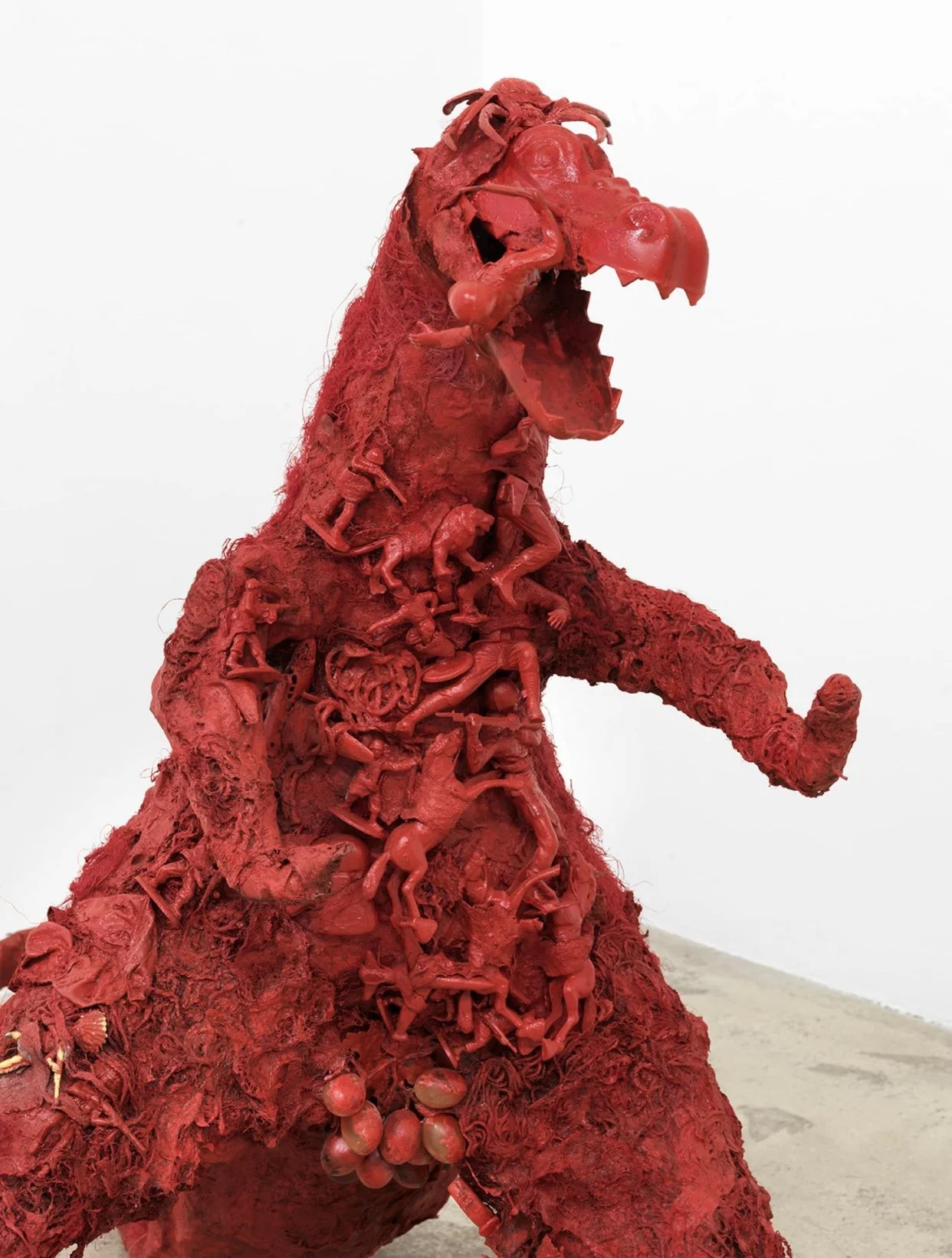 Niki de Saint Phalle. Le Dragon Rouge, 1964. Ensamble de yeso, tela metálica, tela, pintura en aerosol, hilo, cabello y figuras de plástico. Único. 87.0 x 132.0 x 58.0 (cm). Galerie Georges-Philippe & Nathalie Vallois.