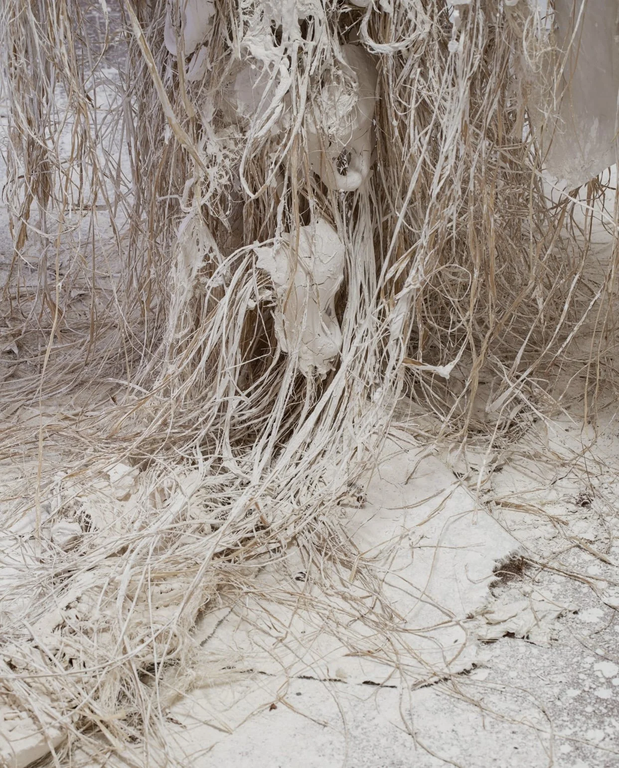 Dominique White. May you break free and outlive your enemy, 2021. Hierro fundido, vela nula, sisal, arcilla de caolín, cuerda desgastada, rafia, conchas de cauri. 485.0 x 320.0 x 420.0 (cm). VEDA.