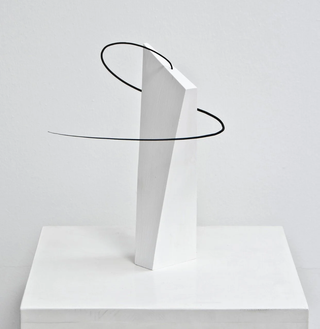 La delicadeza de todas las obras de Otto Boll (Alemania, 1952) les otorga una apariencia frágil y efímera. La sencillez y el minimalismo saltan a la vista, pero también la forma en que se camuflan con el entorno, volviéndose en ocasiones casi invisibles. Ohne Titel (2020) es uno de esos ejemplos, aunque no el más extremo; algunas piezas del artista están hechas únicamente de finas piezas de acero negro.