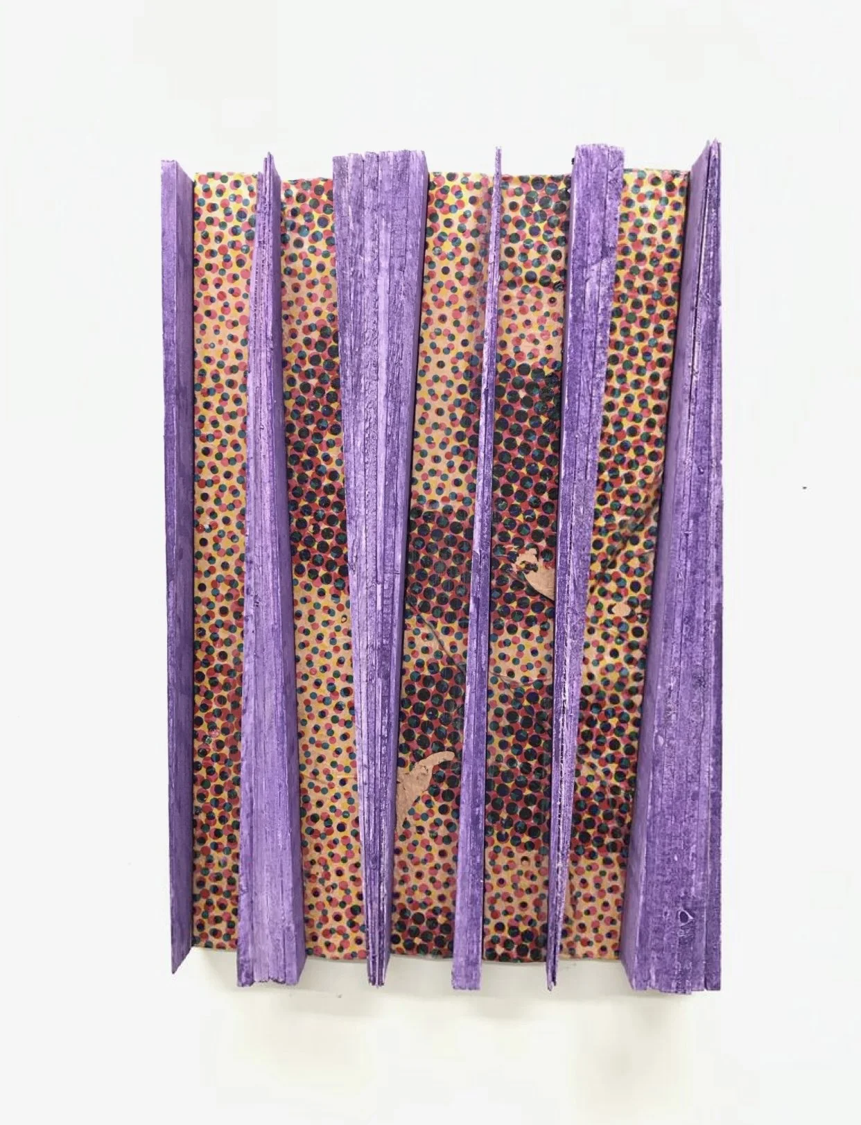 Joseph Montgomery (EE.UU., 1979) utiliza una gran cantidad de materiales para producir sus piezas, como arcilla, cartón, fragmentos de madera, hormigón, papel, trabajando con pintura al óleo y acrílica, cera, laca, gouache o fibra de vidrio. El resultado son obras únicas y en cada una podemos encontrar un patrón nuevo que no se ha usado en las demás. Image Five Hundred Fifteen (2020) es una de sus producciones más interesantes, ya que utiliza gouache, transferencia de pigmentos, papel y acrílico sobre cedro y madera contrachapada.