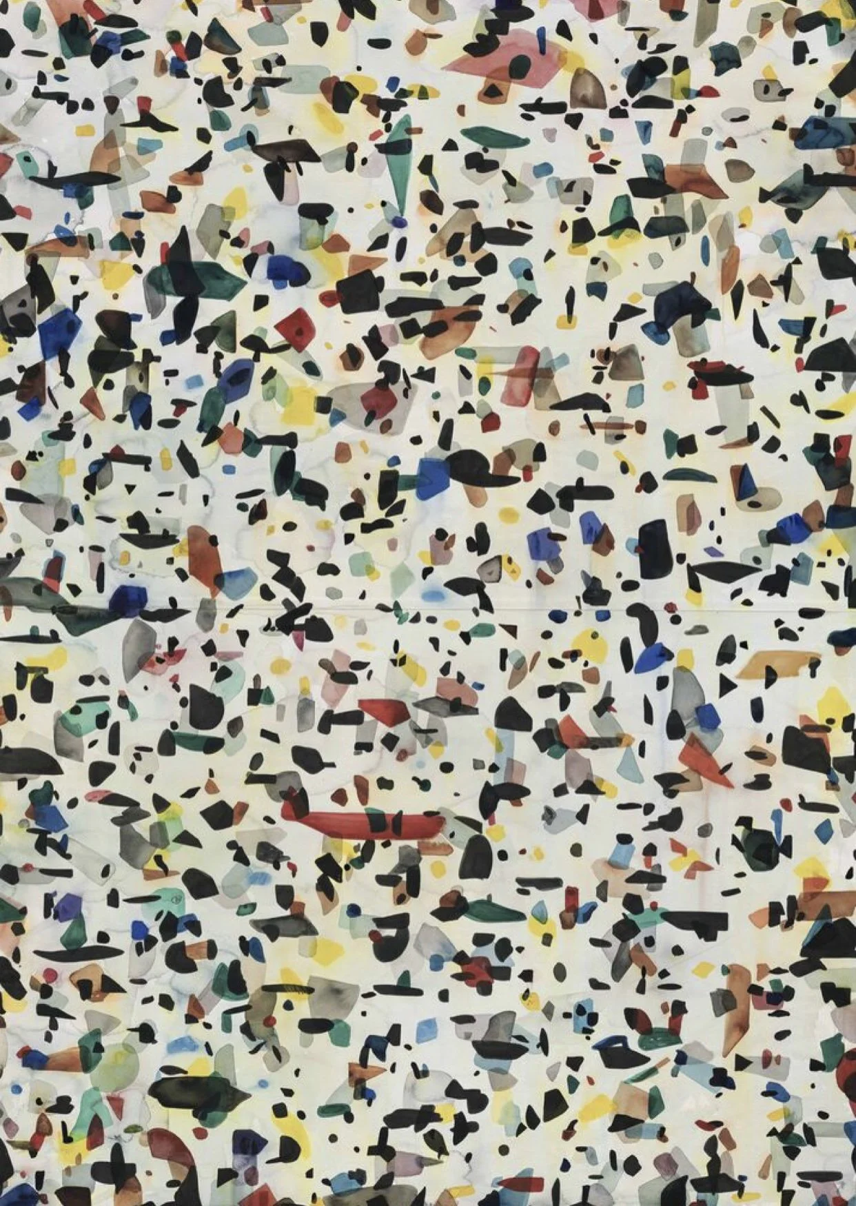 Radenko Milak. Microplastic from the beach (2021). Acuarela sobre papel montado sobre panel de madera. 200 × 140 cm. PRISKA PASQUER.